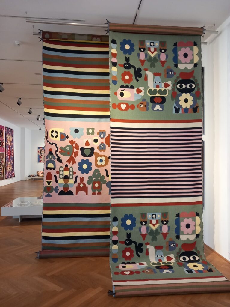 Bei meinem Besuch im Gewerbemuseum gab es zwei Ausstellungen, eine trug den Titel «Farben der Architektur» und zeigte die Wirkung von Farben in Gebäuden und Räumen. Die zweite Ausstellung, welche ich mir angesehen habe, hiess «Gib Stoff» und stellte die fantasievollen, farbigen und surrealen Textil- & Musterwerke der Schweizer Textilschaffenden Stéphanie Baechler, Christoph Hefti und Sonnhild Kestler aus.