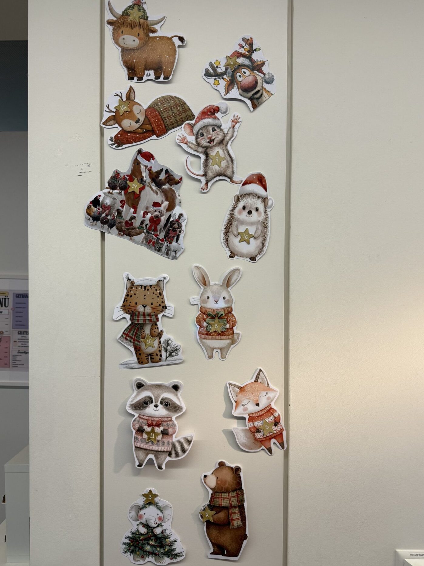 Jedes Jahr im Dezember gibt es einen selbstgemachten Adventskalender, bei dem jedes Türchen von jemand anderem vorbereitet wurde. Wir treffen uns alle täglich um 09:50 Uhr und öffnen gemeinsam ein weiteres Türchen. Hinter unseren Gustello Türchen verstecken sich dann kurze Aktivitäten, ein Rätsel oder mit liebe gebackene Zimtschnecken.